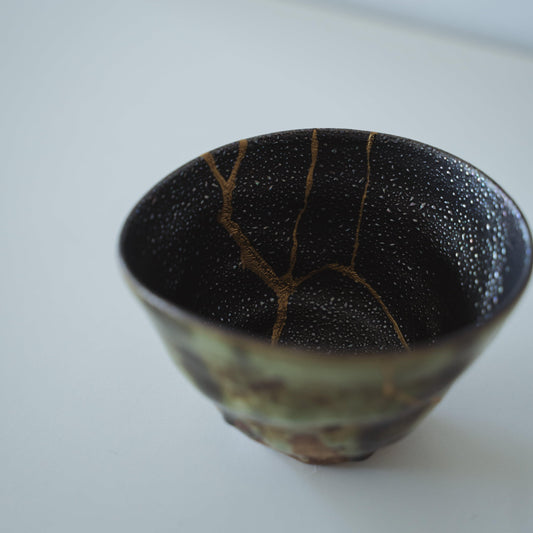 The origins of Kintsugi can be traced back to the 15th century, when the shogun Ashikaga Yoshimasa's favorite tea bowl was broken. Dissatisfied with the simple metal staples used to repair it, he inspired the creation of Kintsugi, transforming the damaged area into a visible decoration with lacquer and gold. This technique subsequently evolved in connection with the tea ceremony culture, giving rise to various Kintsugi methods and leading to the modern art of Kintsugi that symbolizes the spirit of "wabi-sabi".