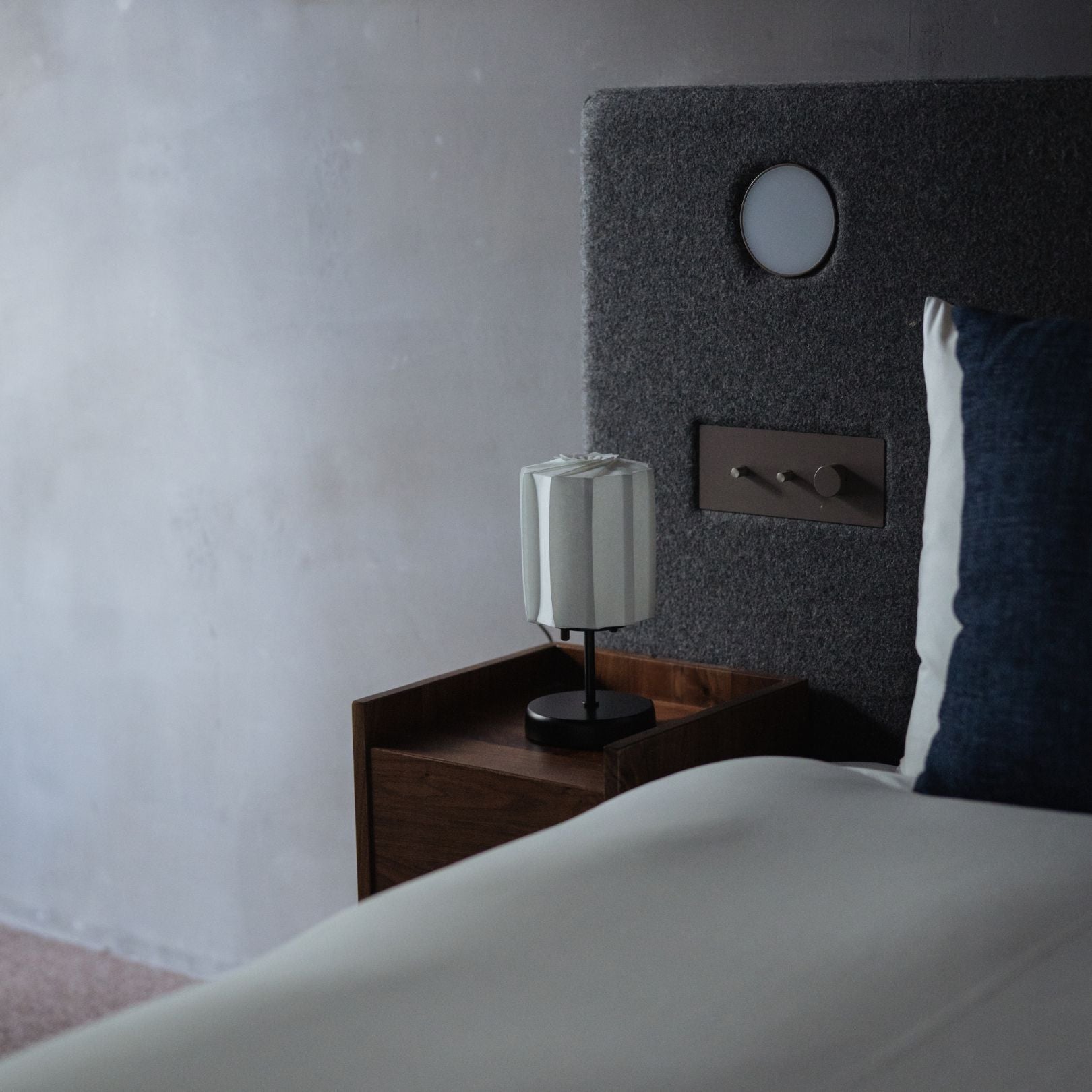 Handcrafted in Kyoto, this lamp fuses 1,000-year Kyo Hyogu and Origami traditions. Frameless washi offers structural beauty and casts delicate, serene shadows.